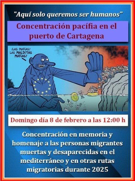 Concentración Pacifica en puerto de Cartagena en memoria y homenaje a las personas migrantes muertas y desaparecidas en el mediterráneo y en otras rutas migratorias durante el 2025.